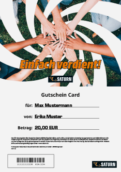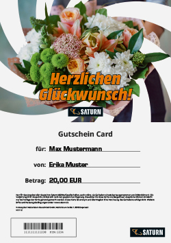 Mit der Saturn Gutschein Card zum Sebstausdrucken erhältst du das perfekte Geschenk nach nur wenigen Klicks in der Hand.